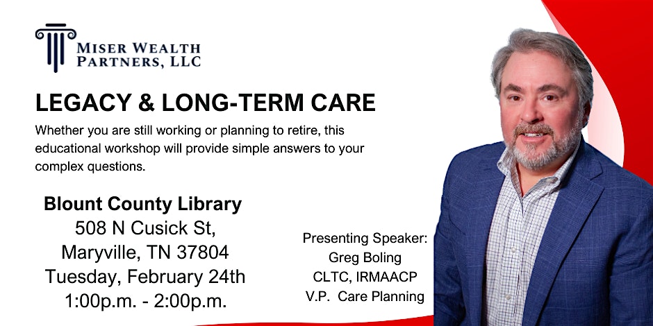 Join us for an exclusive educational conversation with Greg Boling, Vice President of Long-Term Care at Miser Wealth Partners, LLC, as we explore strategies about planning for long-term care and protecting what matters most.